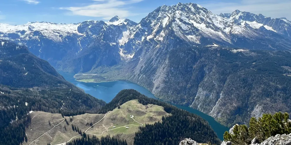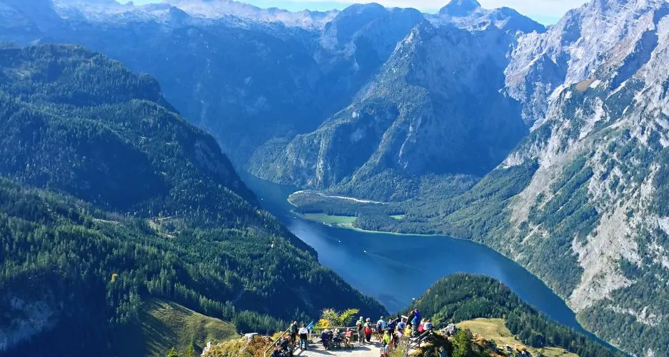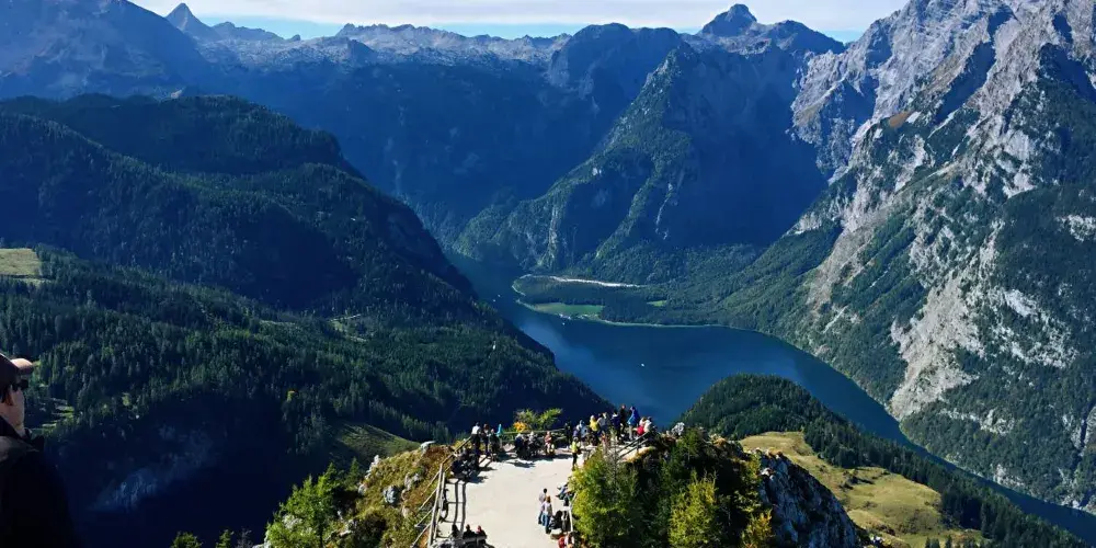 國王湖是狹長8公裡的山間湖泊,湖邊有座白牆紅頂的聖巴多羅買禮拜堂,是國王湖的標誌,坐落在國王湖中段西岸的Hirschau半島,只能乘船或步行很長時間才能到達。