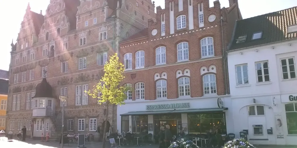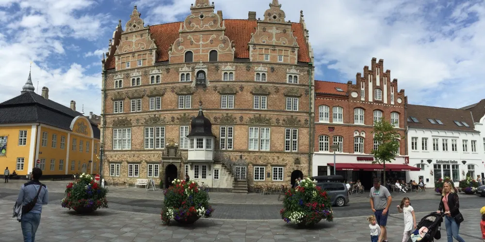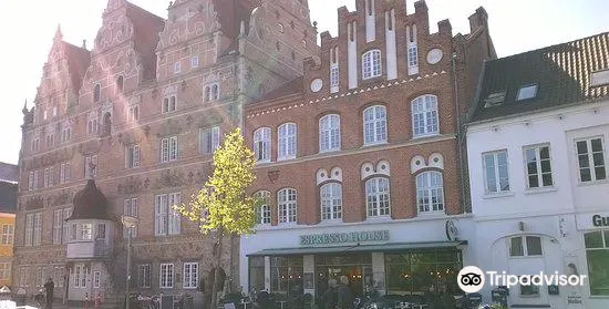JensBangsStenhus是一座美麗的文藝復興風格建築,建於1624年,由當時的富商延斯•邦斯修建。建築高5層,是用暗紅色的磚砌成,華麗大氣。