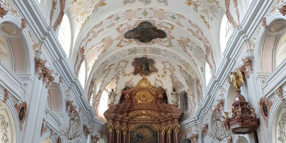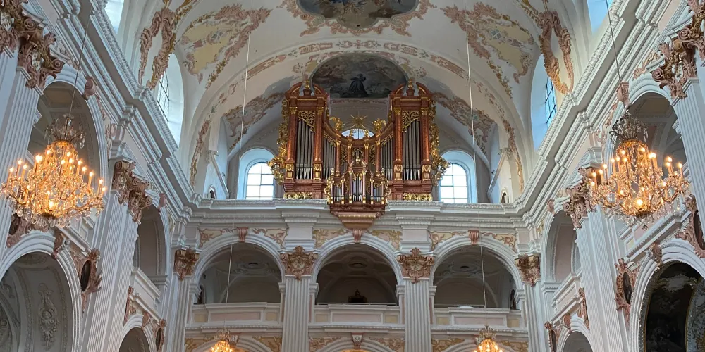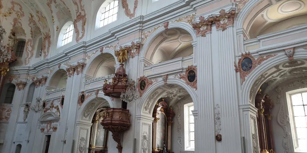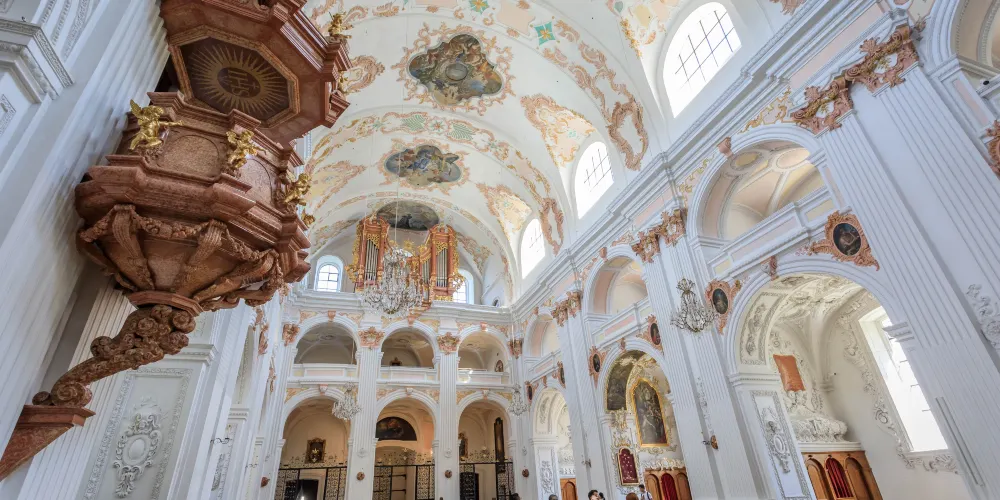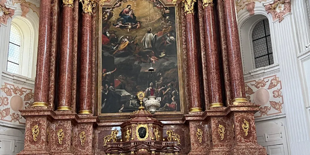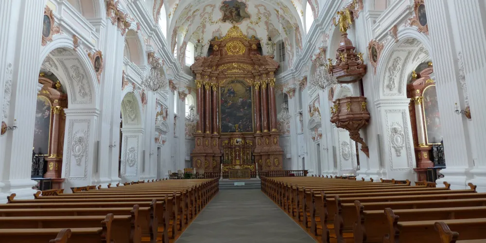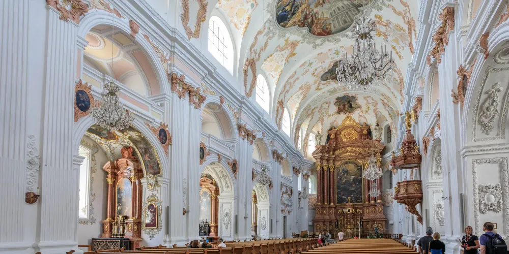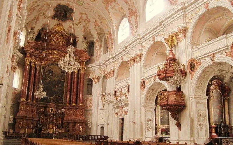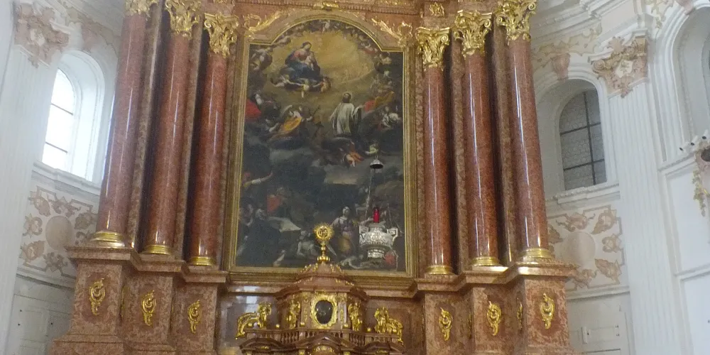 耶穌會教堂隔著羅伊斯河與舊市政廳相對,建於1666年,是瑞士一座大型巴洛克式神殿。18世紀中期,人們重新裝飾了這個拱形屋頂,在這個小教堂裡仍然保留著“瑞士守護神”克勞斯兄弟(Brother Klaus)的僧袍。 教堂位於河邊,離卡佩爾廊橋不遠,從河對岸看過來景色非常漂亮。教堂的外觀很醒目,擁有兩個具有代表性的拱頂裝飾,內部裝飾也十分華麗,尤其是聖具室和寶庫,不可不看。教堂內的聖壇由紅色的大理石裝飾,完成於1681年。