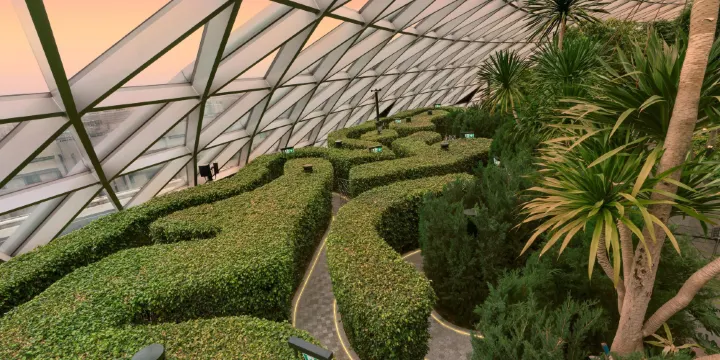 星耀樟宜是新加坡全新打造的一個地標性建築,位於新加坡樟宜機場第一航站樓前方,是一座遊樂勝地、購物休閒、住宿餐飲、花園景觀和航空設施的綜合性建築。其中的資生堂森林谷(Shiseido森林谷)是星耀樟宜的核心景觀,這裡是新加坡規模大的室內植物展示地之一,也是一個奇妙的機場園林,在建築內不同樓層都有出入口。