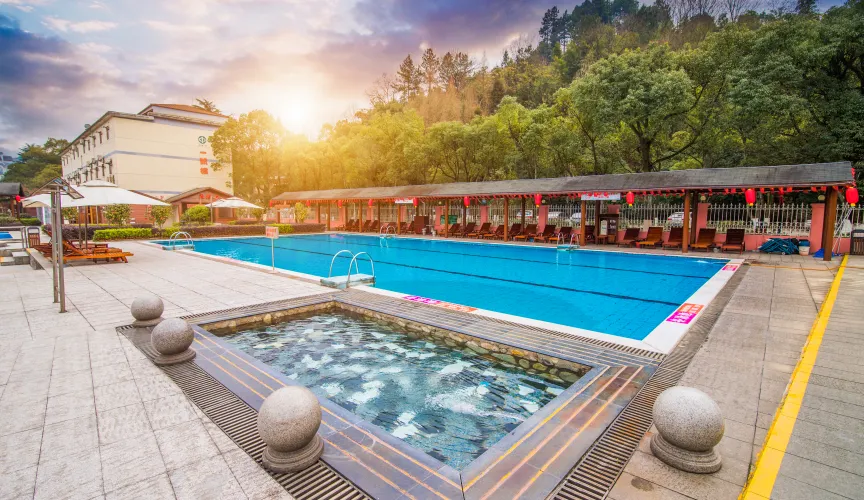 則評價明月山天沐溫泉度假村坐落在風景秀麗的宜春市溫泉之鄉溫湯鎮,是一個擁有多年曆史的溫湯地熱溫泉。明月山天沐溫泉度假村配套設施一應俱全。利用明月山的山泉水在度假村內形成了兩個美麗的湖面,觀景客房臨湖而建。山景、湖景、庭景三景合一。