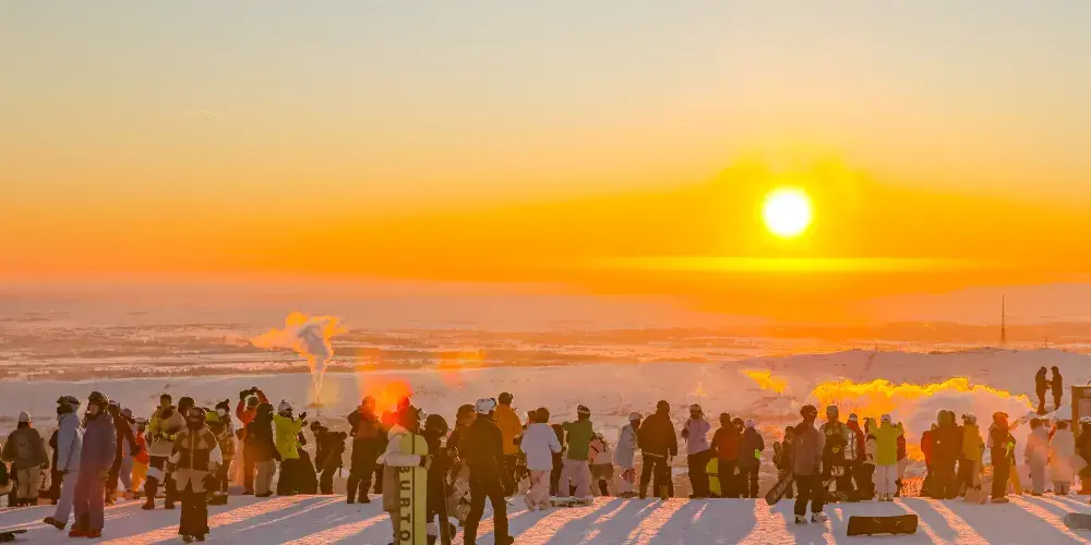 將軍山的夕陽是國內滑雪場必打卡的景點,日落之後,將軍山的晚霞和夜景都美得令人驚嘆,你可以感受一半橘子海、一半漸變粉的愛樂之城!