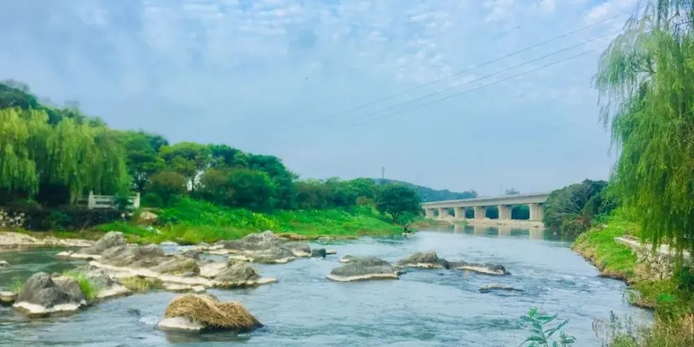 江口蒜溪生態公園內有騎行步道、綠道景觀帶等基礎設施,以山水田園的生態環境為基底,公園裡翠柳依依,花團錦簇,悠閑別緻,鬧中取靜,讓人心曠神怡。是市民休閑散步的好去處。