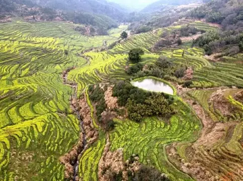 汪搓是一個沒有開發的小村莊,一個被梯田包圍的小村莊,村前村後都是一片片的油菜花,遠處的粉牆黛瓦如鑲嵌在山腳下的一幅水墨畫,有興趣的人應當去看看,感受原汁原味的田園風光。
