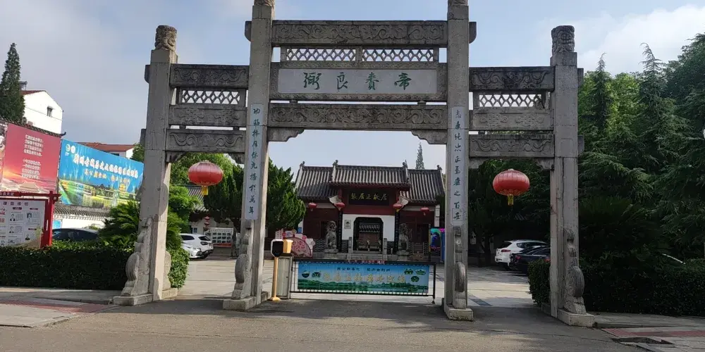 關公館又稱關帝廟,位於荊州古城南門旁。整個館宇模仿原關廟風格,儀門、正殿、陳列館前後呼應。漫步景區,門前有一座高大的牌樓,上面寫的有“關帝廟”三個字。景區內供有劉、關、張桃園園結義的三兄弟之塑像,殿前有兩棵千年銀杏樹,是古剎歷史悠久的見證。