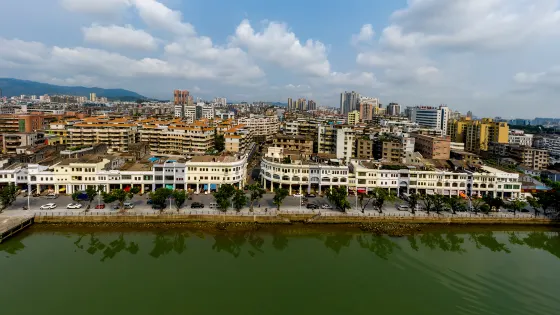 長堤風貌街是江門市老商業區和曆史街區。這裡的商鋪幾乎是獨具嶺南特色的“騎樓”建築群,充滿了濃厚的文化氛圍和內涵。