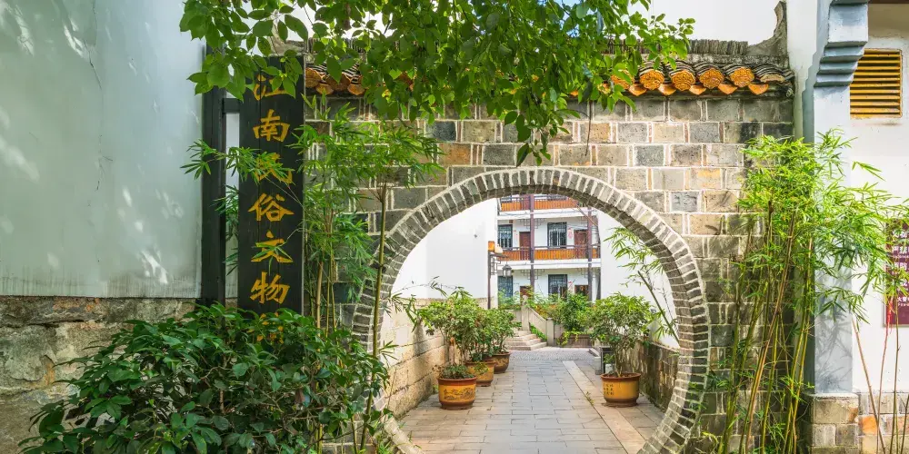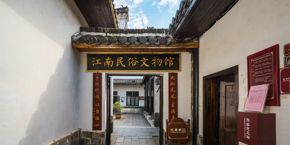 江南民俗文物館,由花轎館、千尊古神殿、珍藏館三個小館組成。館藏以明清民俗文物為主,可上溯至五代唐朝,總計上萬件。民俗文物多為古代百姓喜慶、祭祀等大型活動中的常見物品,花轎、面具、佛像、各類珍稀文物,勾勒出一幅幅鮮活的先民生活場景,集中反應出當地獨具特色的民間風俗。千尊古神殿,古神殿裏陳列了36尊非常古老的石神像和很多小神像,在其他廟宇看到的都是金光閃閃的菩薩,一般都是用木頭、泥巴等做成的,再塗以金銅粉,而在古神殿裏所陳列的都是上百上千年的老石像了,具有原生態美。花轎館及珍藏館,陳列着宋朝皇帝賜給禮部尚書的生日禮物,有900多年的歷史了,館中還陳列着文房四寶(宣紙、徽墨、端硯、湖筆)、銅鏡、面具、花床、三寸金蓮、花轎、鳳冠等文物,底藴深厚,值得深品。