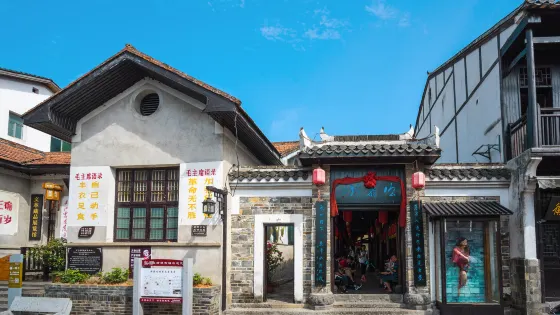 則評價位於古鎮保健街,舊址為老風格的建築,對聯“四海翻騰雲水怒,五洲震盪風雷激”舊址大廳正中間為青年時期雕像,這裏還有一些革命時期的珍貴文物,如糧票、布票、汽車票等票證,還有上世紀六七十年代農民的生產生活用具,如棉花錘、吹火筒、斗笠、蓑衣和木屐等。