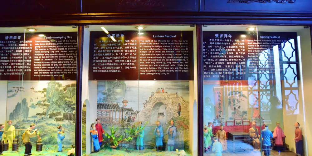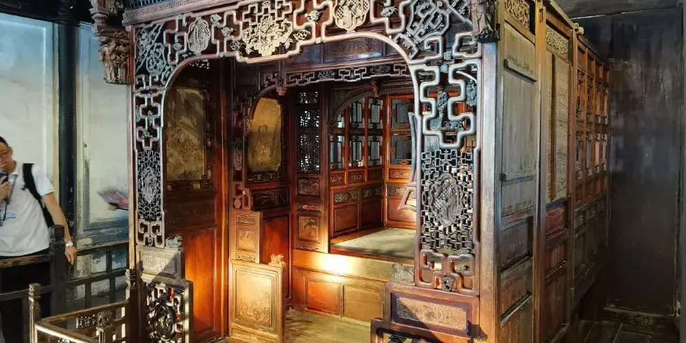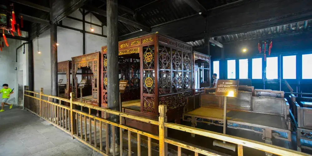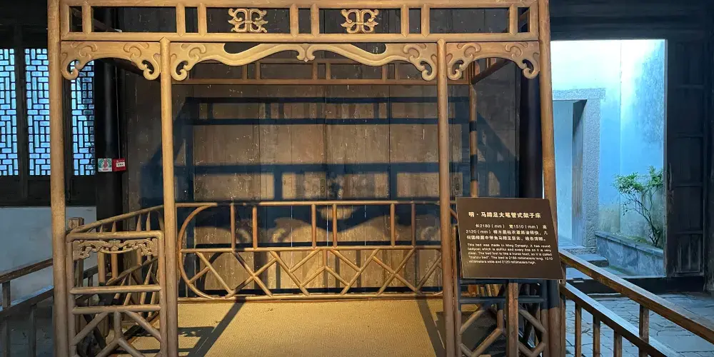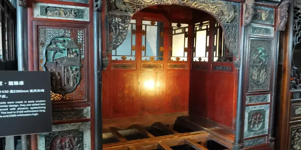 江南百床館收藏了近30張明代以來的江南古床,既能看到富商大賈的華麗,亦能看到平民百姓的簡樸,算得上一段歷史的縮影。這些床的設計頗為考究,其中較為搶眼的「清拔步千工床」前後共有三疊,歷時3年雕成,是鎮館之寶。