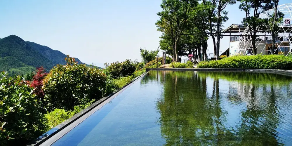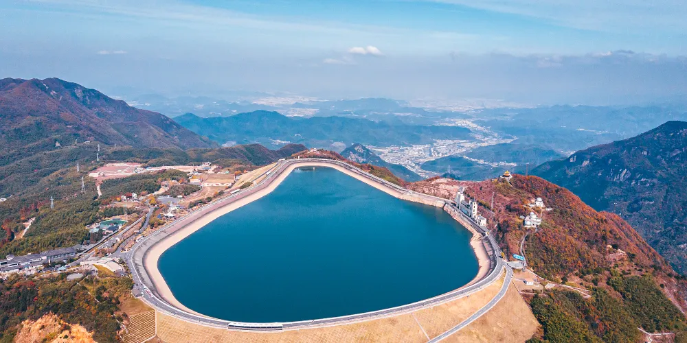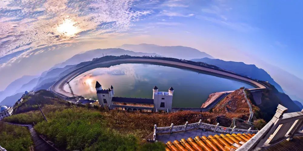江南天池是天荒坪抽水蓄能電站的上池,是利用天荒坪與擱天嶺山峰間的窪地挖填而成,你可以選擇到觀光車站乘坐觀光車沿著天池邊圍繞的公路遊覽。湖的西南邊是滑草場和拓展基地,有各種娛樂項目,是休閒放鬆的好去處。