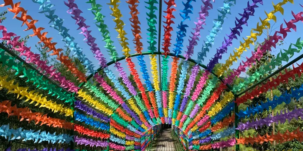 藏龍百瀑景區位於安吉縣城以南25公里處,是夏季賞瀑登高的度假勝地。這裡有浙江較為集中的瀑布群,一路有成群的溪流瀑布伴你上山。景區內樹木蔥鬱,非常清涼非常宜人。還有各種木橋、棧道、索橋、茅廊,登上861米的山頂更可俯瞰群山翠谷,風光特別好。景區內還有特色滑車,可以體驗從半山腰穿過層層密林滑行到山下的刺激感。而每年從4、5月開始,景區旁還有皮筏漂流項目。