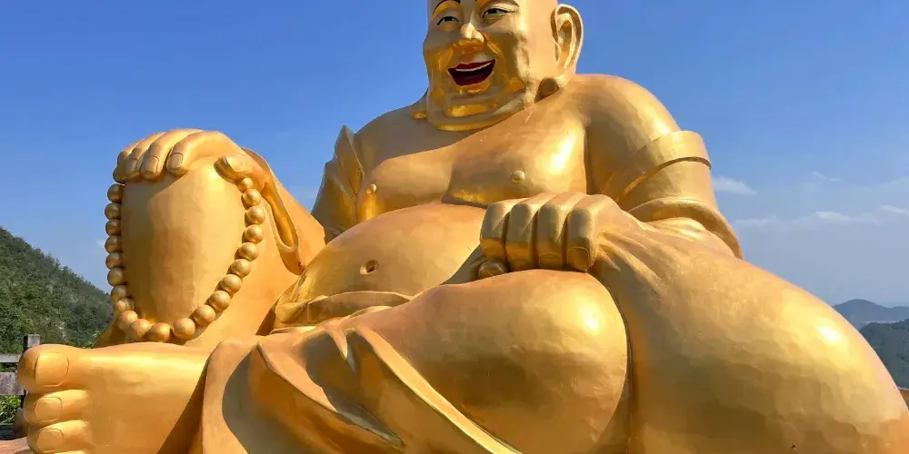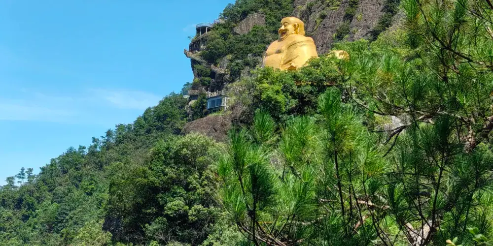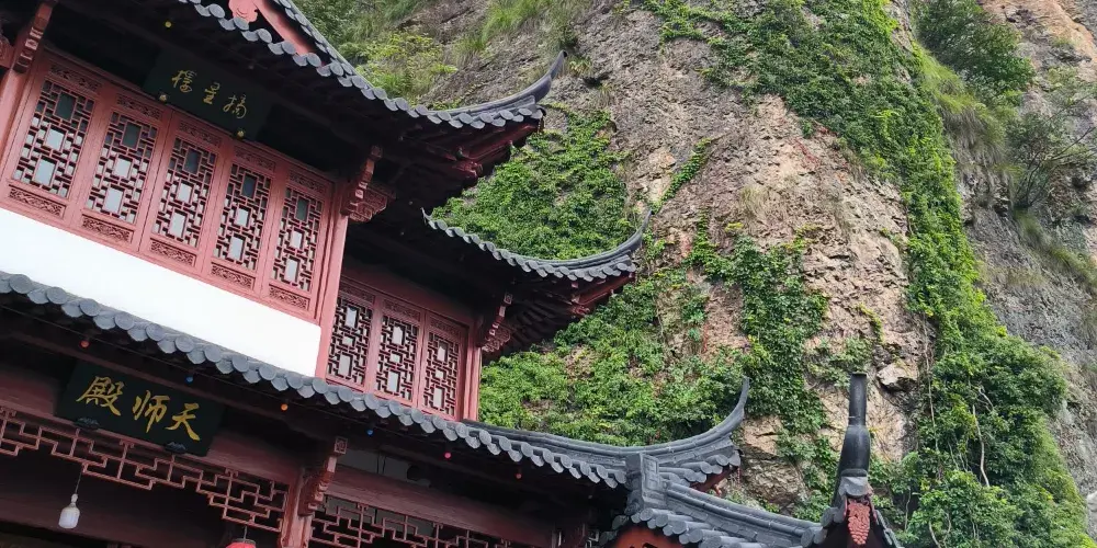 大慈巖風景區位於建德市南面24公里處,山上有金閃閃的雙面佛像,半山腰的寺院建築一半嵌入巖腹,一邊凌駕懸空,和恆山懸空寺有異曲同工之妙,因此也被稱為「江南懸空寺」。