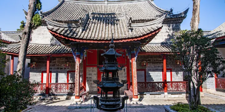 會澤古城江西會館又稱萬壽宮,俗稱江西廟,是江西籍客商在會澤建造的同鄉會館。坐落在會澤縣城江西街中段。整個江西會館佔地面積,房屋44間,建築面積2874平方米。坐南朝北,沿中軸線作縱深佈局,為三進兩跨院。由門樓戲台、正殿、後殿等組成。正殿為“真君殿”,供奉江西道教創始人許遜神像,東偏殿懸“玉龍萬壽”匾,西偏殿懸“砥柱西江”匾。後殿為觀音殿,供奉觀音、文殊、普賢神像,懸“慈航普渡”匾。另闢東西跨院,東跨院為花園,西跨院內建有室內劇場,可容觀眾500餘人。江西會館非常有特色的是門樓戲台。戲台為穿鬥抬樑混合式歇山頂結構,前檐開山門,樓層作戲台。前檐三重,後檐五重,檐下有裝飾性的密集型斗拱挑檐,挑檐中設一神龕,內供福、祿、壽三星。屋頂前後共42隻翼角,造型別致,設計精巧,有如仙鶴展翅,凌空飛翔。戲枱麪闊16米,高13.6米,可供較大型的傳統戲曲演出。在會澤的會館寺廟建築中素有“會館五子”之譽,被認為是會澤“縣寶”。