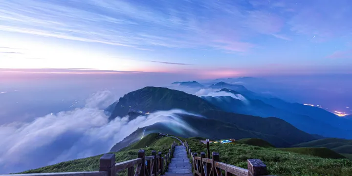 江西武功山-萍鄉武功山景區位於萍鄉市東南部,屬湘贛邊界羅霄山脈北段,是江西省西部旅遊資源豐富的大型山嶽型風景名勝區。歷史上曾與廬山、衡山並稱江南三大名山,有“衡首廬尾武功中”之稱。武功山主峯白鶴峯(金頂)海拔1918.3米。