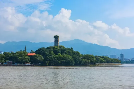 江心寺位居溫州市北郭永清門外甌江之中的一個小島嶼上,本名龍翔禪寺,但因獨特的地理位置而俗稱「江心寺」。寺院原來面積僅約一平方公里左右(現經填塞淤淺擴大地面,添建了新的遊覽點),兩端各有一座小山峰,峰頂都有一座凌空的寶塔,即名為東、西塔。東峰西麓原有“普寂禪院”,西峰東麓有“淨信講寺”又稱“西塔院”(即今“溫州博物館”)。江心寺內主要建築有鐘鼓樓、大雄寶殿、三聖殿、方丈室、齋堂等。現存之江心寺為清乾隆五十四年(1789)重建,面積約2870平方米,分前、中、後三殿。前殿為金剛殿,東西有長廊,兩端置鐘鼓樓。今宋代古鐘尚存。中殿為正殿,為壯觀。殿內門檻聯匾額,琳瑯滿目。正柱聯為宋王安石撰併書。後殿三聖殿,殿額與對聯皆為弘一法師所書。寺院大門兩邊有題為宋王十朋撰書的疊字聯:「雲朝朝朝朝朝朝散,潮長長長長長長長消」。