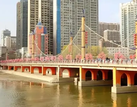 建設橋位於孔雀河上,在夜晚燈光的照耀下特別美。
