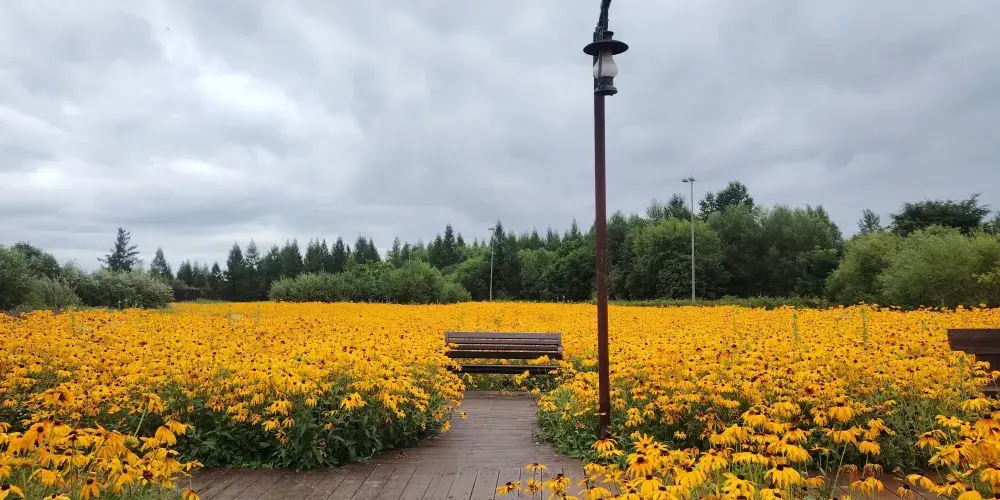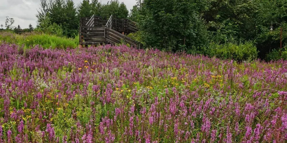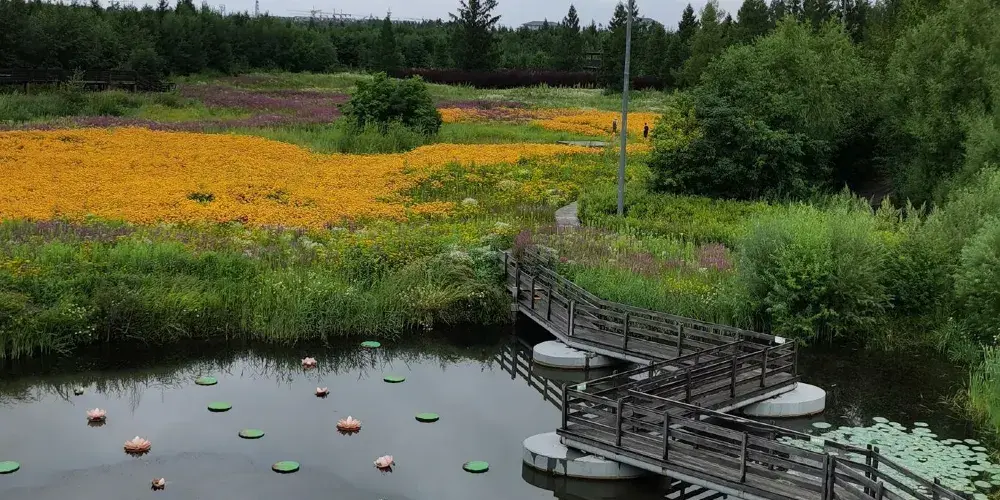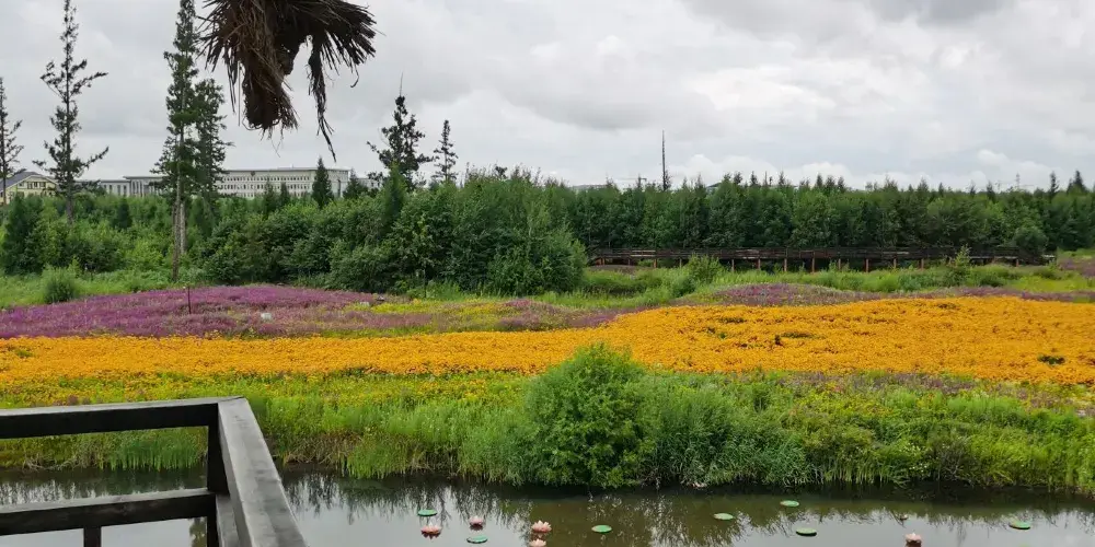 鹼水河國家濕地公園位於二道白河鎮池北區。公園面積較大,公園裡有大片濕地花海,也有步行的棧道。空氣清新,讓人心曠神怡。
