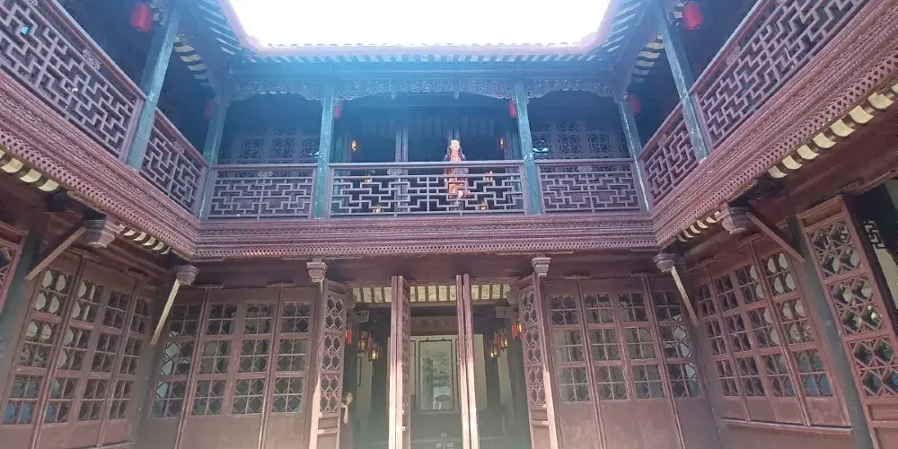 衍慶樓即內宅堂樓。可見門樓上枋刻有“暗八仙”淺浮雕,下枋一塊玉中心刻有“福祿壽”三星的深浮雕,字牌上刻著“厚道傳家”四個大字。移步衍慶樓內,一幅幅惟妙惟肖、栩栩如生的名人軼事木雕,曆曆在目,觀者無不為之傾倒。位於衍慶樓西北隅還有一座水秀閣,小閣臨水而築,小巧玲瓏。置身其中,近可聞風聲、水聲、鳥叫聲,遠可觀小橋駁岸,老樹蒼翠,是一個修身養性的好去處。