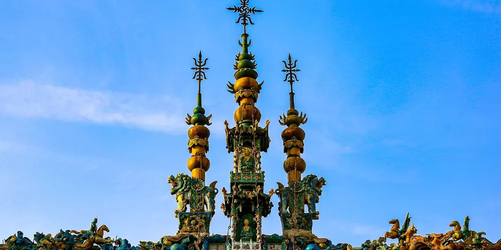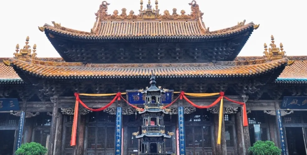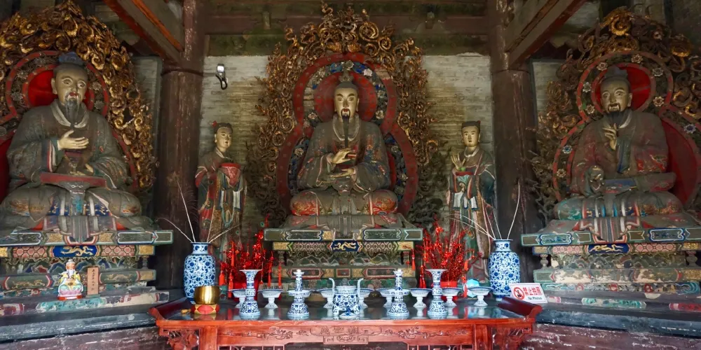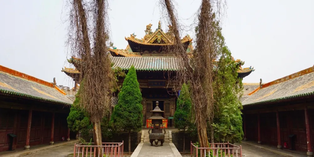 介休後土廟,是一處道教廟宇,位於介休縣城西北角,為山西省重點文物保護單位之一。介休後土廟,是一處包括五進院落並配有樓台殿閣的龐大建築羣。這個建築羣裏,有影壁、山門、過殿、東西廊房、三清樓、鐘鼓樓、後大殿等。後土廟內的主體建築是三重檐十字歇山轉頂結構的大樓。樓頂,龍吻高聳;獅飾、琉璃樓閣、蓮花脊筒、獸頭角神相互輝映,構成了一幅生動壯觀的琉璃製品的圖畫。後土廟之內,有反映道教內容的近千尊懸壁彩塑。這些塑像,塑造手法極高,達到了相當的藝術境界。這些彩塑,形象逼真,姿態各異、衣紋線條流暢、形象豐滿而神情自然,是不可多得的彩塑藝術佳作。據明代萬曆年間金粧聖像碑記載,這些彩塑可能是明代早期的作品。