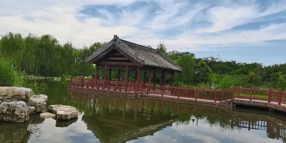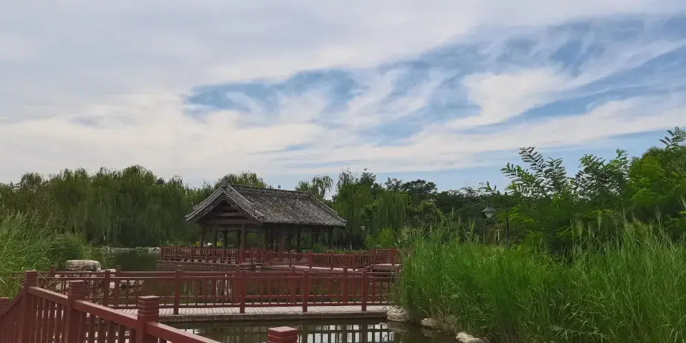 津北森林公園坐落於天津市武清區,公園包括啟動區和核心區兩大部分。主要是指以楓林會所為核心,以楓葉彩林景觀為休閒島。另外,親水平台、休閒平台視野開闊,緊挨著湖畔,是觀湖、賞花的場所。遊客如果想要休息,可到休閒平台、空中走廊、雙亭等處,另外還有木屋、房車也是城市人體驗鄉野生活的好去處。