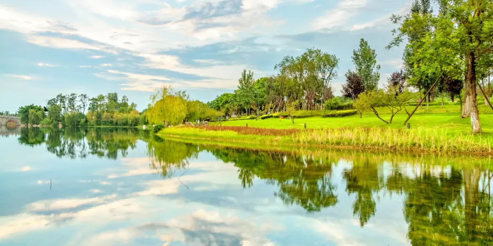 錦城湖,項目位於成都市繞城高速路南段,西起成昆鐵路、東至站華路,在錦城公園的基礎上擴建而成,總用地面積約158.7萬平方米,湖區總水面約66.9萬平方米,以劍南大道和外環路十字分割,劃為四個湖區水面。湖區按照“疏林草坡——悦動水岸”的主題設計,將修建停車場、防災避險場所、管理用房、綠道及驛站等公共服務設施。