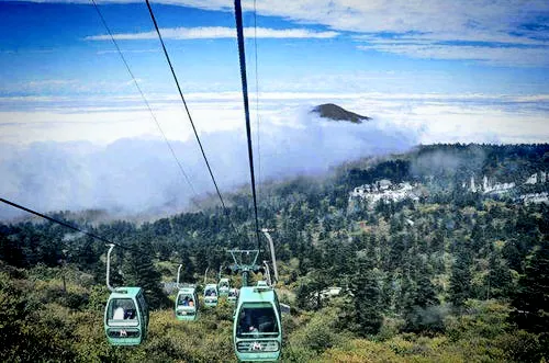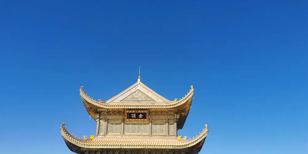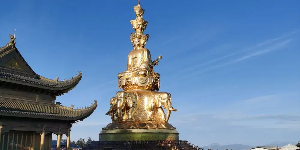 金頂是峨眉山的山頂,金頂上的四面十方普賢菩薩金像,是眾多遊客來峨眉山的必體驗之地。這裏海拔3079米,除了高達48米的銅製十方普賢像外,金頂還有一座華嚴寺,可供祈福。金頂的四面十方普賢金像是世界上較高的金佛,也是普賢菩薩的第一個四面十方藝術造型。普賢菩薩像後邊的華嚴寺有三座大殿,其中的第三殿是普賢殿,也叫金殿或者“金頂”,是峨眉山較高的殿堂,殿門的匾額有“金頂”、“行願無盡”、“華藏莊嚴”等牌匾,殿內供奉“普賢騎象”的銅像。