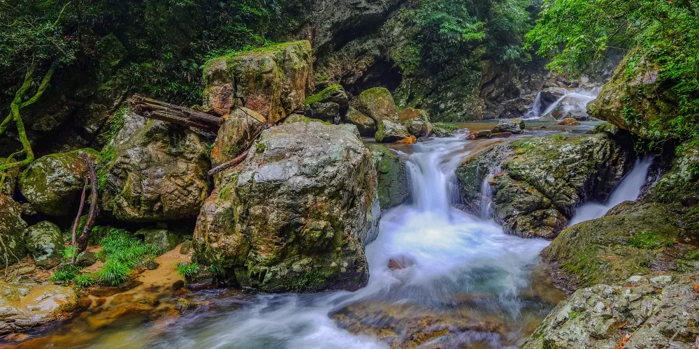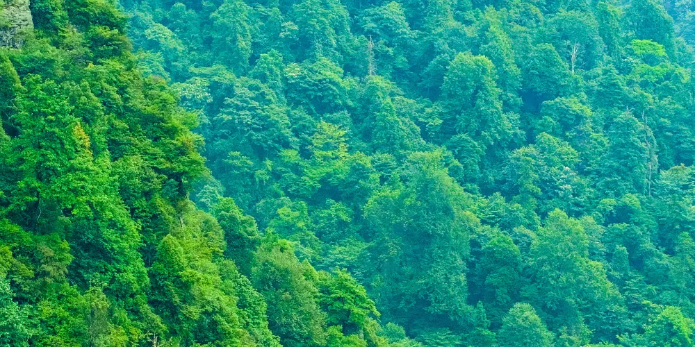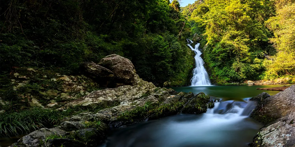 井岡山環境優美、風光綺麗、空氣清新,每立方厘米空氣中含負氧離子數超過80000個,被稱為“天然氧吧”,森林覆蓋率達86%,生態環境佳,是理想的旅遊避暑療養勝地。