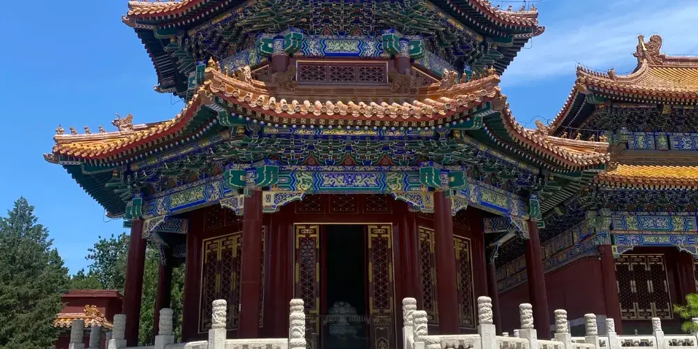中路:中路主要的建築是銀安殿和嘉樂堂,殿堂屋頂採用綠琉璃瓦,顯示了中路的威嚴氣派,同時也是親王身份的體現。