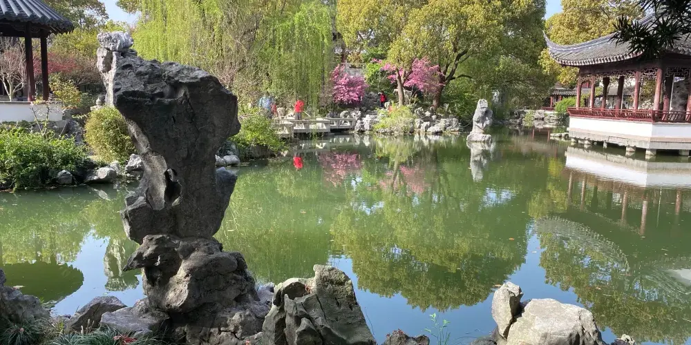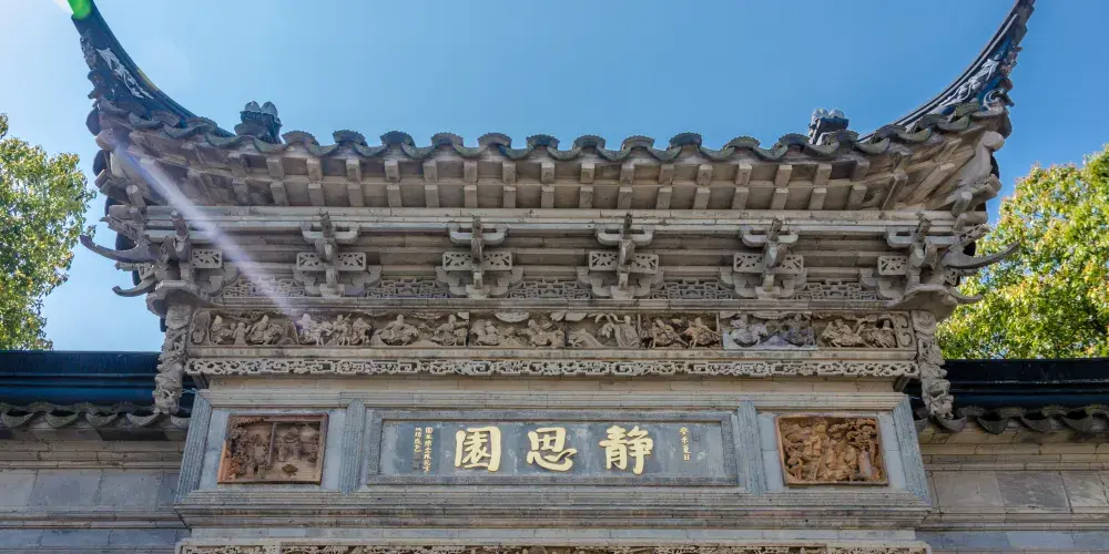 靜思園始建於1993年,耗時十年,是江南一帶的私家園林。靜思園雖然是當代新造,但沿襲蘇州古典園林特色,園名“靜思”乃寧靜思遠之意。靜思園內眾多明清時期的磚雕門樓、古木廳堂等精美建築都是從滬蘇皖蒐集而來,在園內組成了一幅歷史與現代的建築風景畫。靜思園可謂是“古建博覽,奇石世界”,園主人酷愛奇石,園內立有不少奇石異岩,尤以鎮園之寶慶雲峰聞名。