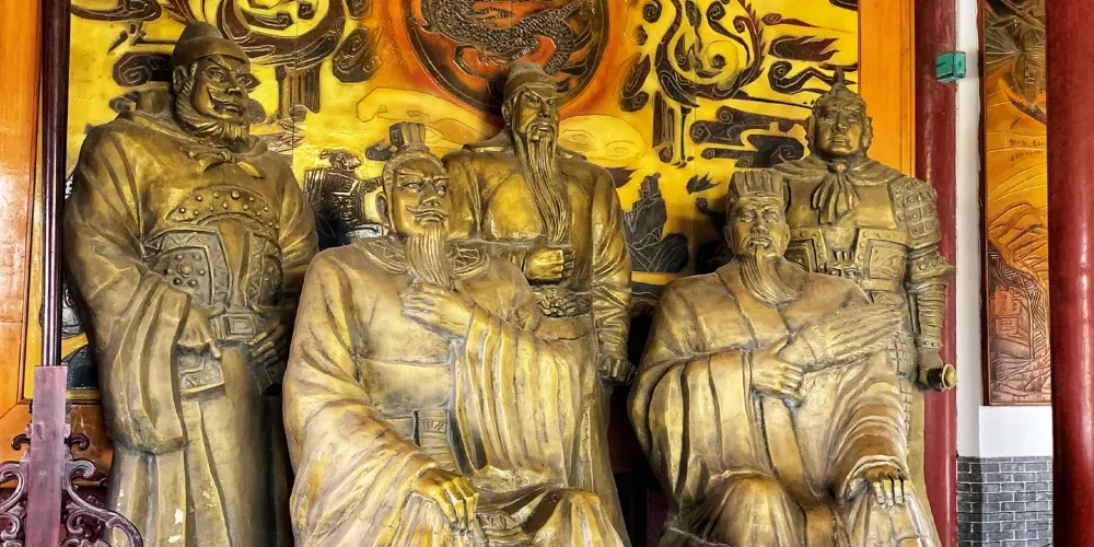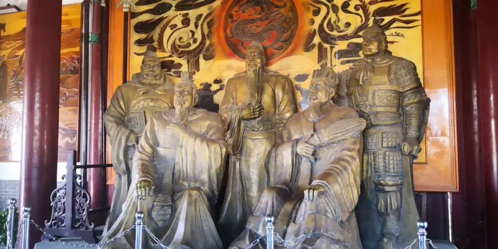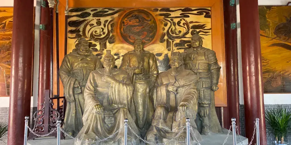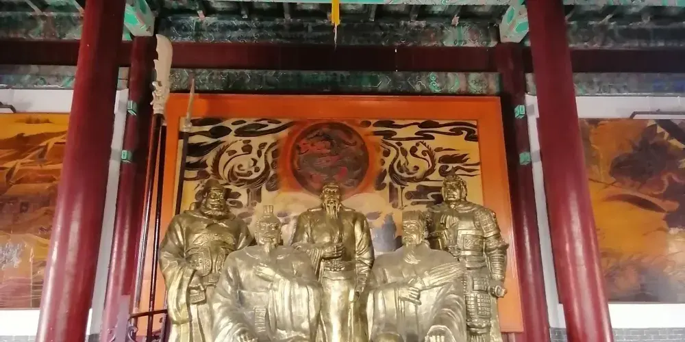 關公館又稱關帝廟,位於荊州古城南門旁。整個館宇模仿原關廟風格,儀門、正殿、陳列館前後呼應。漫步景區,門前有一座高大的牌樓,上面寫的有“關帝廟”三個字。景區內供有劉、關、張桃園園結義的三兄弟之塑像,殿前有兩棵千年銀杏樹,是古剎歷史悠久的見證。