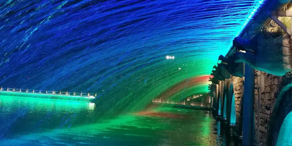 荊州古城東門光影秀表演以水流為舞台、以城牆為熒幕,以燈光為載體,詮釋了荊州獨有的城市品牌和文化內涵。在燈光的映襯下,古城牆、賓陽樓、金鳳騰飛、九龍柱、屈原像等城市標誌流光溢彩、熠熠生輝。整個光影秀分為天、地、人、和四個篇章,一幕一個故事為您展示荊州人文歷史、旅遊資源。通過聲光電的完美組合,伴隨著畫舫夜遊,開啟了古城夜遊新篇章。