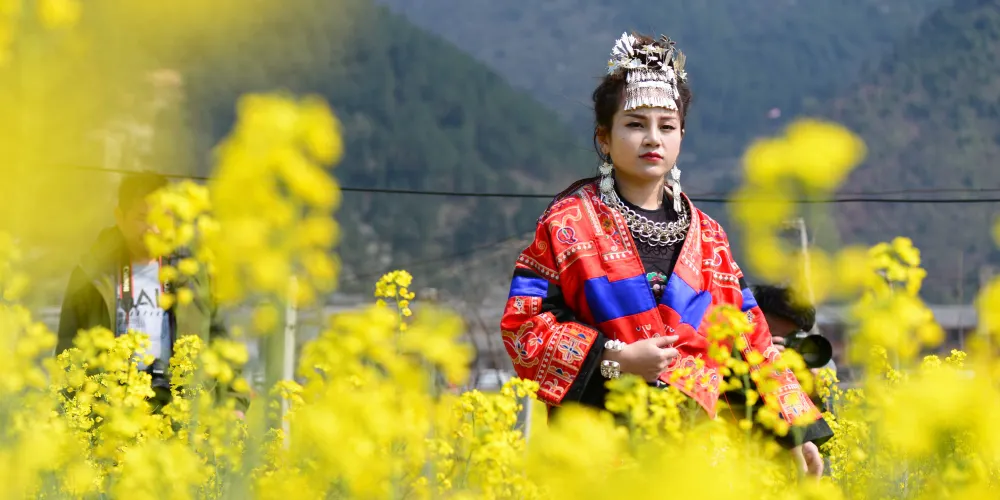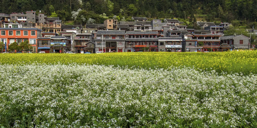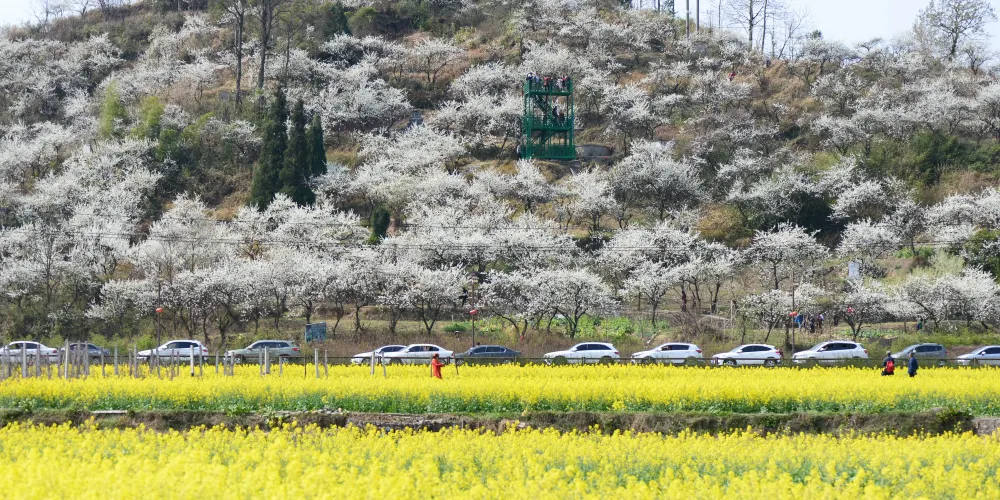 陽春三月,在貴州省貴定縣盤江鎮音寨村,金黃的油菜花和雪白的李子花交相輝映,被人們譽為“金海雪山”。音寨家家戶戶都在自己的房前屋後山坡上種植李樹,每至春分,從音寨極目四望,遠山近巒,到處綻開雪白純潔的李花,這就是遠近聞名的盤江酥李之花。