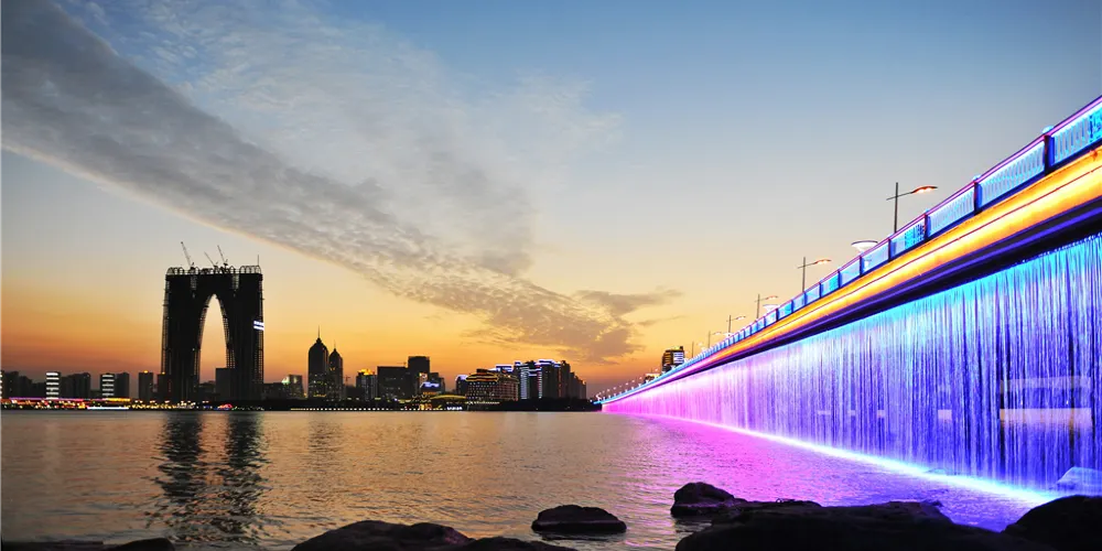 從吳中勝地虎丘山朝東遠眺,只見一泓碧波在陽光下閃現著迷人的光彩,這就是位於蘇州東部的金雞湖。乘坐遊船,從水上觀賞金雞湖不一樣的風景。你會發現金雞湖的碧波在陽光下閃現著迷人的光彩,十分絢麗。