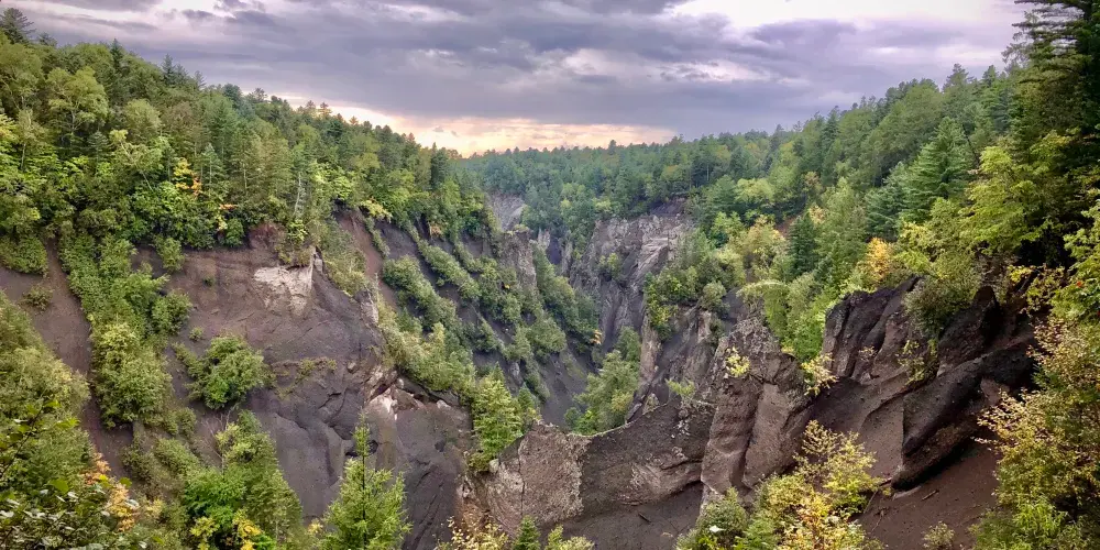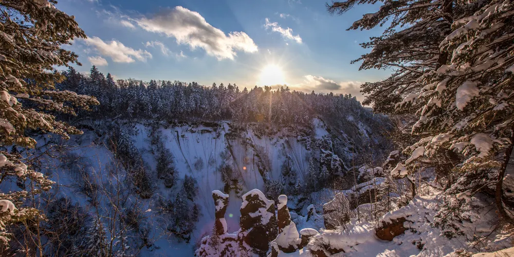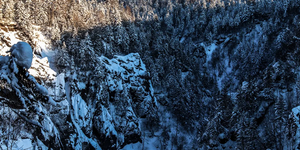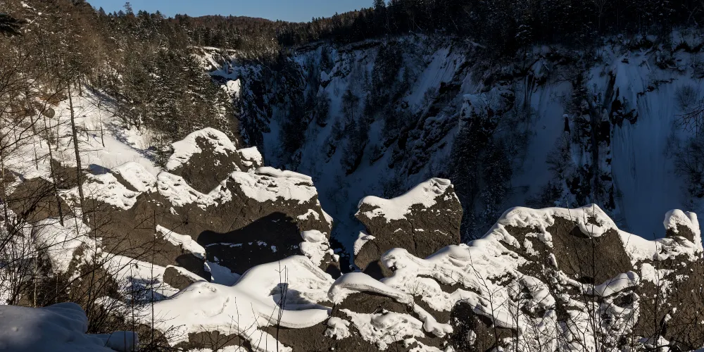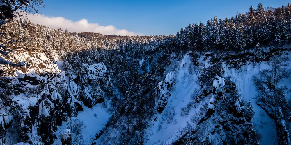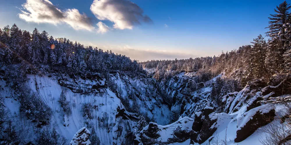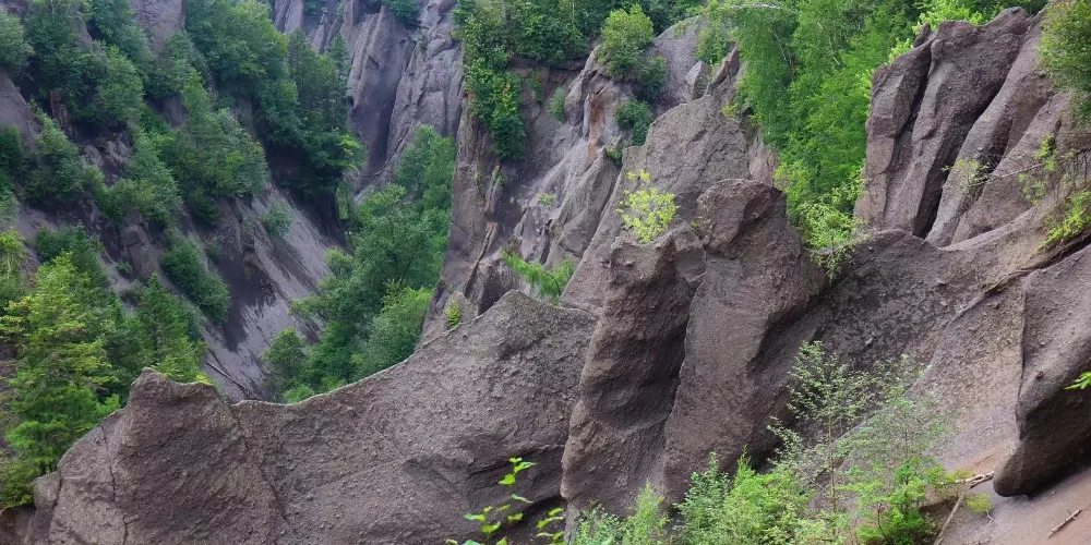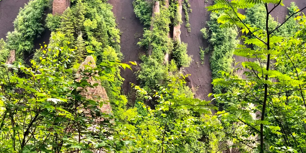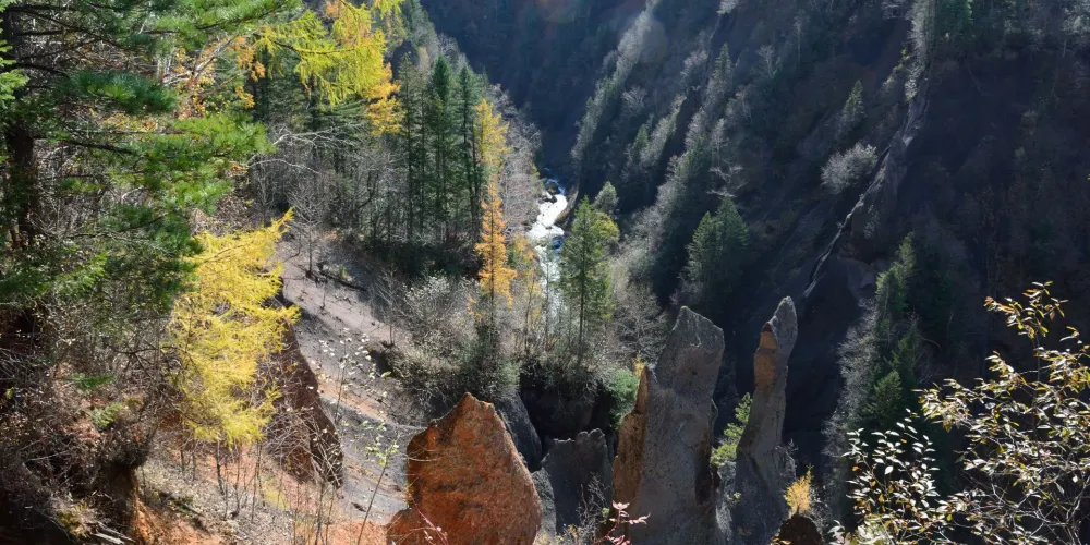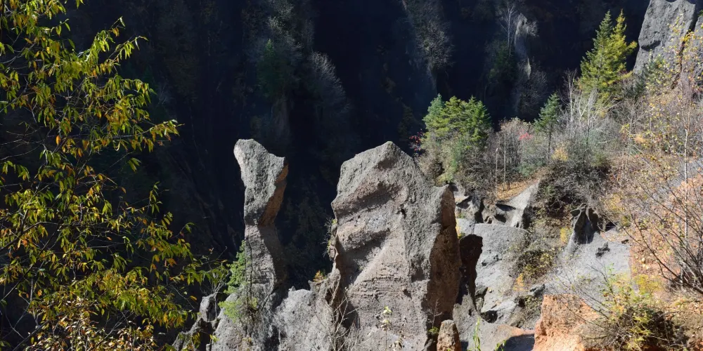 錦江大峽谷又名長白山大峽谷,位於吉林省長白山自然保護區內。該峽谷是火山堆積之後,經過多年斷裂構造作用和流水侵蝕切割而形成的。在這裡可以看到火山熔岩石峰林地貌,這些石峰形似金雞或者駱駝,非常有趣。峽谷兩岸生長著茂密的樹林,環境十分清幽。