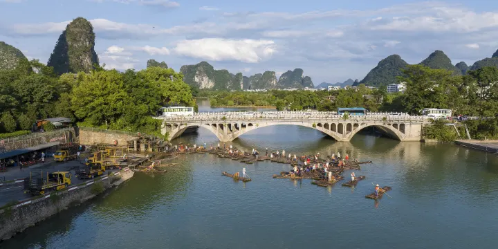 金龍橋造型現代,但因作為遇龍河漂流的經典起點而聞名。站在橋上可將遇龍河的美景盡收眼底。