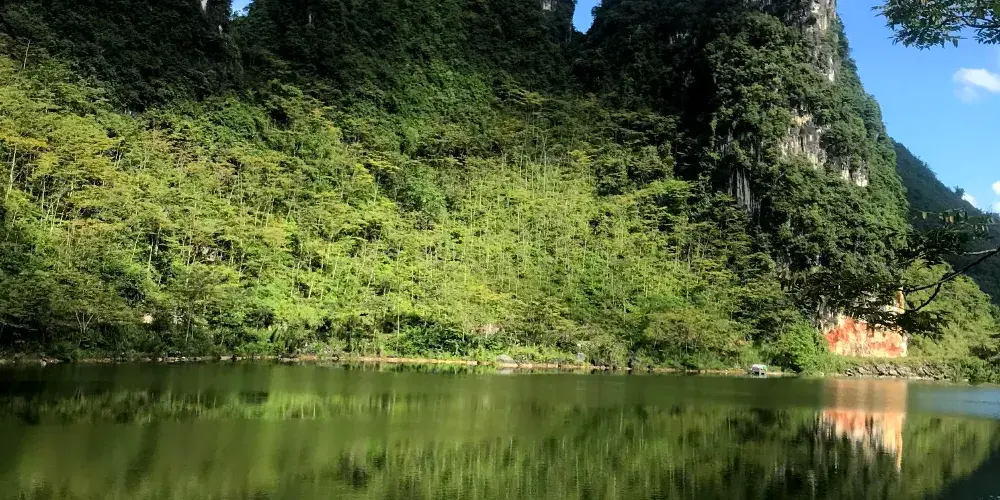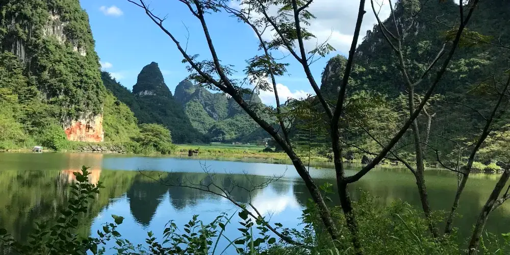 龍州金龍水庫位於金龍鎮以南2公里處,蓄水量1300萬平方米,水面面積近2000畝,成狹長形迂迴於崇山峻嶺中。庫區植被豐富,飛禽走獸時有出沒,充滿野趣,加之風光秀麗,山光水色,令人陶醉,遊人可泛舟觀光,享垂釣之樂,亦可尋山野之樂趣。