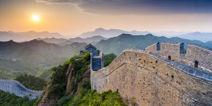 金山嶺長城位於承德市灤平縣與北京市密雲縣交界處,修築在燕山霧靈峰與古北口臥虎嶺之間的大、小金山而得名。這段長城依附山巒建立,視野非常開闊壯觀,是明代長城中景色較為秀美雄壯的一段。與其他地方的長城相比保持了較好的原貌,具有古樸純粹的感覺,遊玩時安靜舒適,是京郊地帶遊覽長城的絕佳選擇。