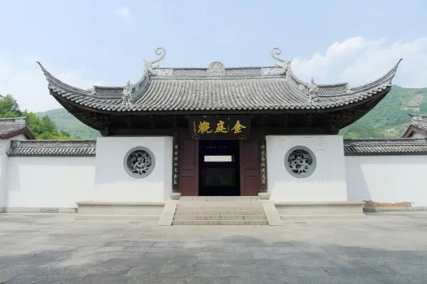 金庭觀原為東晉大書法家王羲之故宅,苧三世孫王衡於此舍宅為觀修煉,稱名金真館,後改稱金真宮;宋永初十七年(440),褚伯玉奏改為金庭觀。觀內原奉有王羲之塑像,建有右軍書樓、玩鵝亭、右軍祠等。