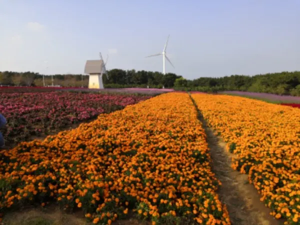錦綉花海位於東部濱海新城石家河公園內部,佔地百餘畝,其中花海主景區分畦栽種不同花色的花卉,配合周邊黑松林環抱的自然環境,將花海,陽光、沙灘和大海揉合在一起。