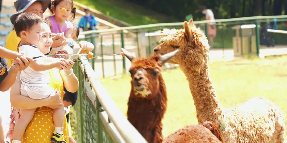 建有白鴿廣場、孔雀園、天鵝湖、草食動物區等多處動物親密互動區,可親自當一次飼養員,給它們餵食、合影留念,感受人與動物和諧相處。