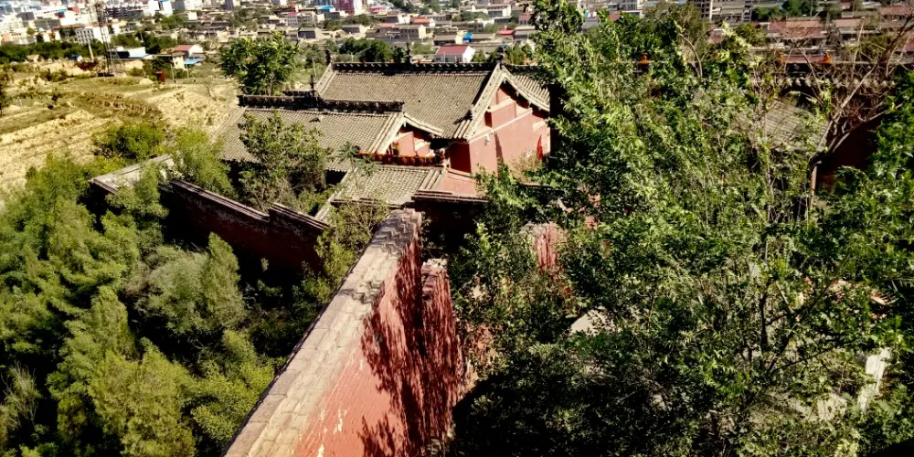 九龍廟又名玄武廟或真武廟,因其位於河津市新城西北1.5公里的紫金山麓九峯之中而得名。它東望虎崗,西瞰龍門,南臨汾水,北枕紫金,三面盪空,居勢高峻,與河津舊城遙遙相對,是一處道教宗廟。該廟創建年代不詳,據現存資料參證,元、明兩代對北極之真武神頂禮膜拜,真武廟的興建在當時亦是空前絕後,故疑其至遲為元末明初所建。明萬曆及清康熙、道光、鹹豐、同治年間對其均進行重修或增建。1981年,河津市又對其進行搶救性維修,使廟貌煥然一新。九峯狀若龍,俗稱九龍頭,又因崗頭遍嶺青松翠柏,紫韻清幽,遠在清乾隆前就有“卧龍崗”之稱,鹹豐十一年(1861)崇文社王照離等人在創建崇文閣、純陽洞時,方題名為“麟島”。九龍廟在麟島之上,佔地達1.2萬餘平方米。廟前山下朝殿坡陡峻,有台階160餘,登其上,入山門,經戲台,穿廟院東西廊房,再登階20餘到香亭(屬乾隆年間重建),正面金匾橫額書曰“威震黑河”。香亭後為獻殿,獻殿座南朝北,麪闊三間,進深兩間,東西各跨僧舍一間。越穿廊便進入正殿,其內四周原有泥塑8尊,為真武侍衞。由正殿抵後宮即是真武神閣,由獻殿往西北有呂祖純陽洞、獻亭、葯王廟、崇文閣,迴廊曲欄,節節登高。中經玉帝閣、紫微大帝、三宮、三皇洞、老君殿,過南天門上棧道,到達頂峯朝天宮(已毀)。