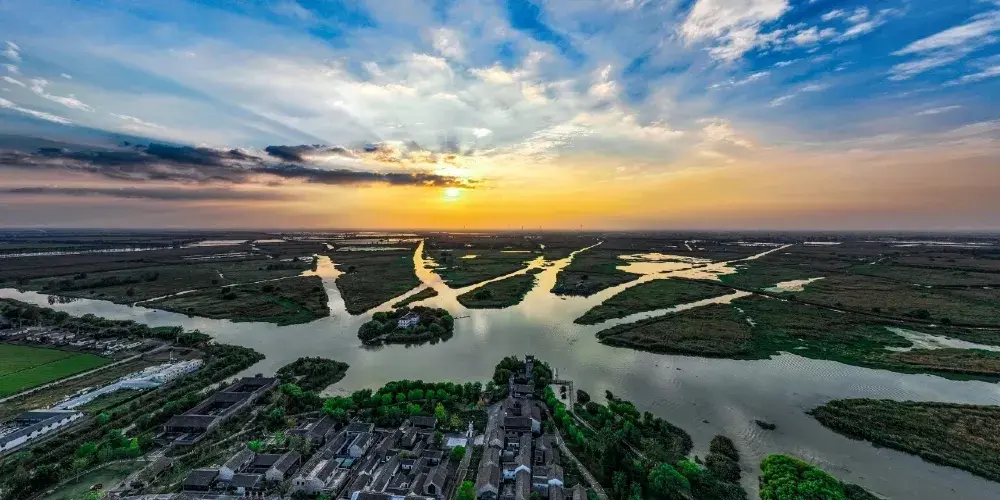 九龍口風景名勝區地處射陽湖腹部的建湖縣。這裡有很多的水禽野味,盛產魚蝦蟹鱉,故有“金灘銀盪”之美譽,是天然的“聚寶盆”。九條銀河從不同方位流過來,如果泛舟水上,可以看到很多鳥一起飛翔,湖中的水清澈見底,這些景象令人心曠神怡流連忘返。