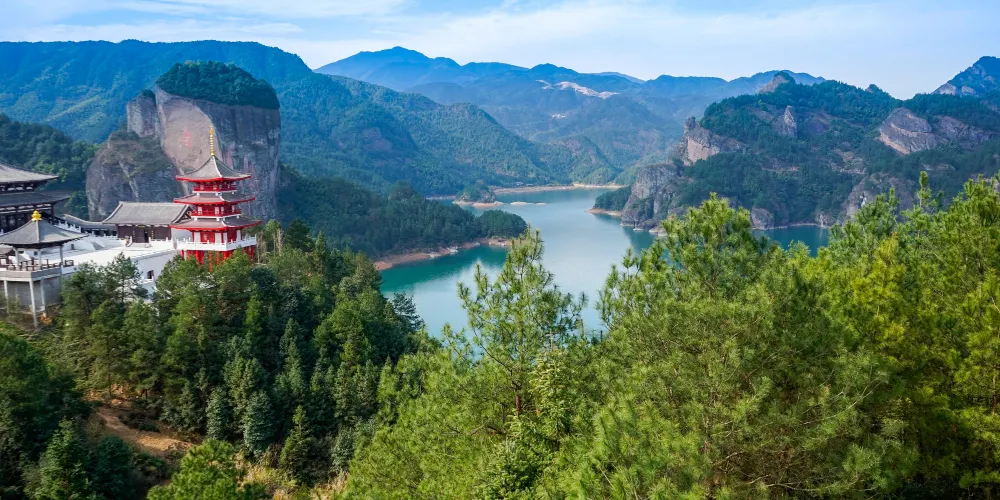 九仙湖風景區位於江西省上饒市廣豐縣東北部的銅鈸山風景區的九仙山之下。九仙湖風景區以奇山、怪石、秀水、險谷、幽潭、翠湖、珍木而聞名,素有“天然氧吧”、“江南天池”的美譽。景區風光秀麗,似一幅天然的山水畫卷。
