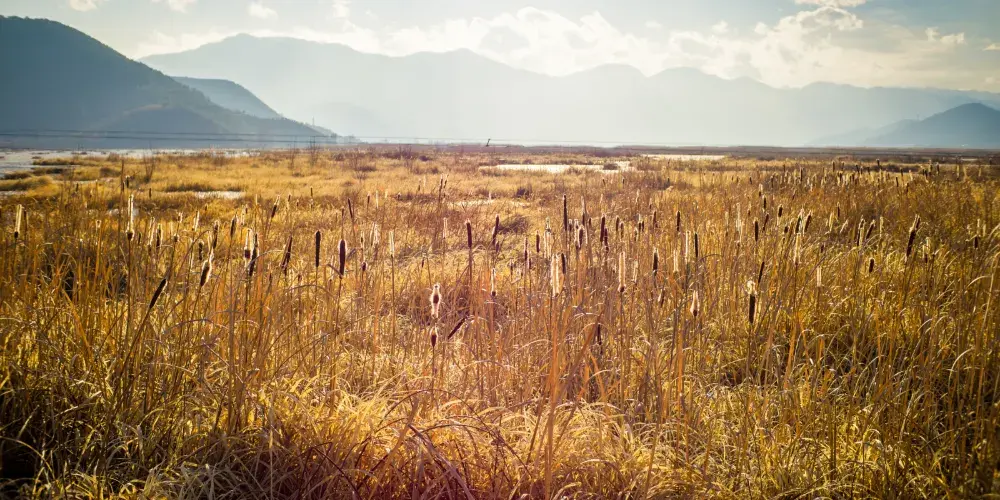 芳草海海拔2910米,顧名思義,其中生長着各種奇異花草,特別是節節草和鴨舌草,在花開的季節,會有各色的花兒綻放,香氣濃郁,搖曳生姿。水中碧草蒼蒼,水禽悠遊。四時觀景,各具情趣,春季綠草如茵,夏日繁花似錦,深秋一抹金黃,冬日潔白晶瑩。秋季,是九寨溝賞玩的好時節,也是芳草海燦爛的季節,野草金黃,可以呈現出不同的色彩,遠遠看去一道道翠環,呈現出一種空靈的境界。