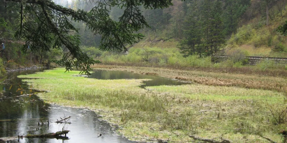 天鵝海位於日則溝,海拔2905米,與草海的下遊相連。四周是茂密的山林和繁盛的花木。