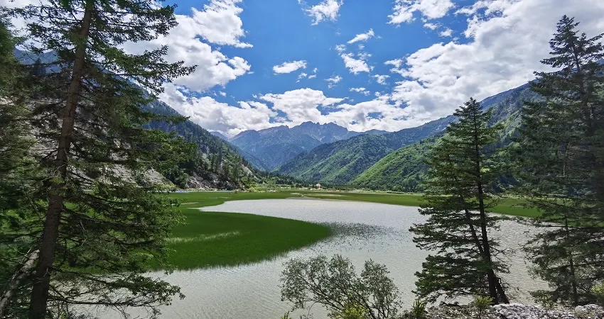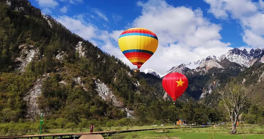 甘海子景區有金犀牛海、芳草海、九曲彩河組成的湖泊群,以此為中心,周圍的高山峽穀中河瀑分布密集,原始森林茂密,高山植物垂直帶譜景觀明顯。它位於九寨溝、黃龍風景區之間,具有便利的交通條件,較大的活動範圍和豐富的景觀資源。另外,還有大劇院、博物館、寺廟、經筒陣、塔林、祭祀祖壇、藏羌碉樓群、歌舞廣場、草地馬場、休閑漂流河道等旅遊景點。