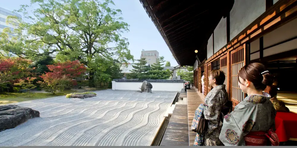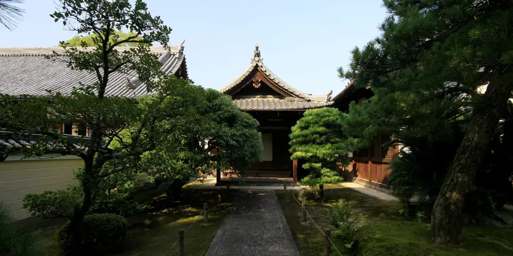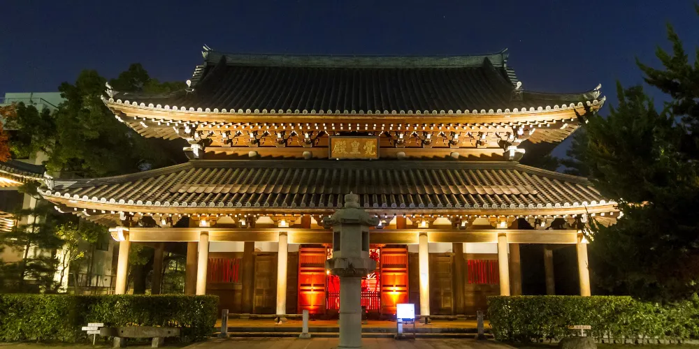 承天寺是臨濟宗東福寺派的寺院,建於仁治3年(1242年),是宋朝出身的貿易商謝國明所建,山號是萬松山,開山祖師是圓爾辯圓。圓爾辯圓即聖一國師,於嘉偵元年(1235年)曾渡海到中國,仁治2年(1241年)歸國。除了佛法教義以外,他也將許多宋朝的文化傳入日本,其中最具代表性的就是烏冬面、蕎麥麵、羊羹以及饅頭的做法。寺內有日本珍貴的文化遺產:釋迦三尊像(鎌倉時期)、禪家六祖像(鎌倉時期)、銅鐘(高麗時期),此外寺內還立著一塊相傳為博多織始祖的滿田彌三右衛門的紀念碑,以及延保2年(1674年)博多商人穀宗理從櫻井神社買來捐給承天寺的鐘樓。
