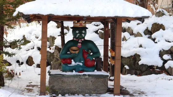 定山溪神社比特於札幌市西南部的定山溪,定山溪的象征物是日本傳說中的“河童”。神社是當地人氣最高的神社之一,每年的祭祀活動都會吸引不少人前來,夏秋季節的祭祀活動,在樹蔭下擺設的長凳長桌都會坐滿了人。冬天會有大片手工特制的雪燈,擺成美麗的圖案,讓人們可以拍照留念。