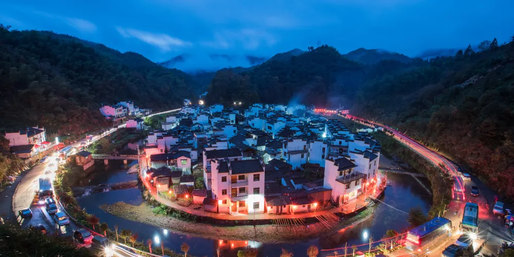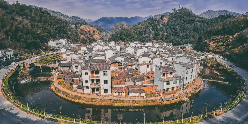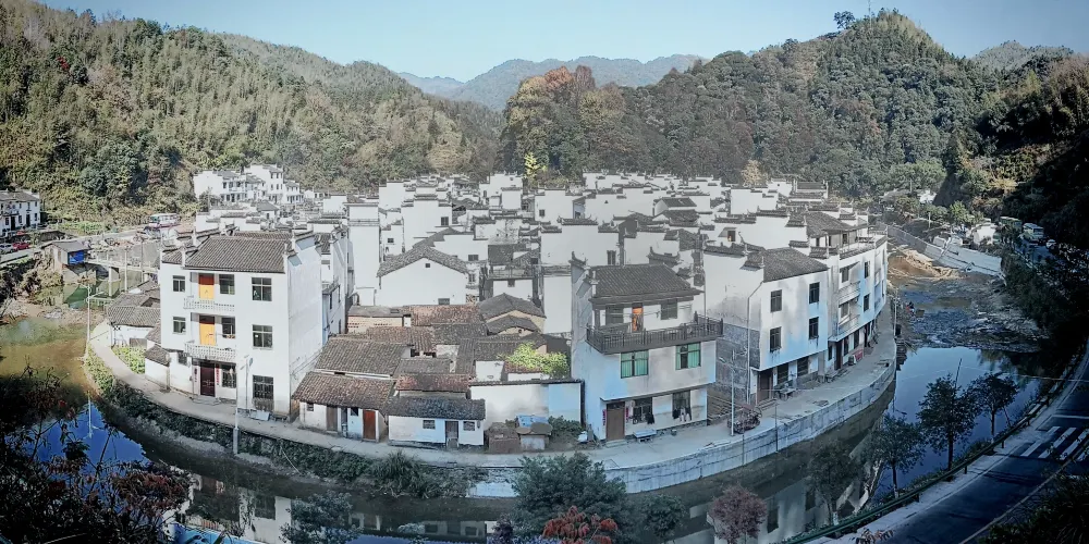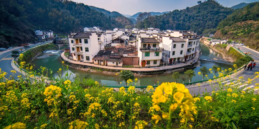 菊徑村地處婺源縣古坦鄉,是個山水環繞的田園古村落。小河呈大半圓形,繞村莊近一周,四周高山環繞。站在村莊對面的山腰上,就能看到整個村落渾圓的模樣。當地人稱為“臉盆村”。遊客可以登上村對面的小坡,俯瞰被山水包圍的小村全貌,別有一番情調。