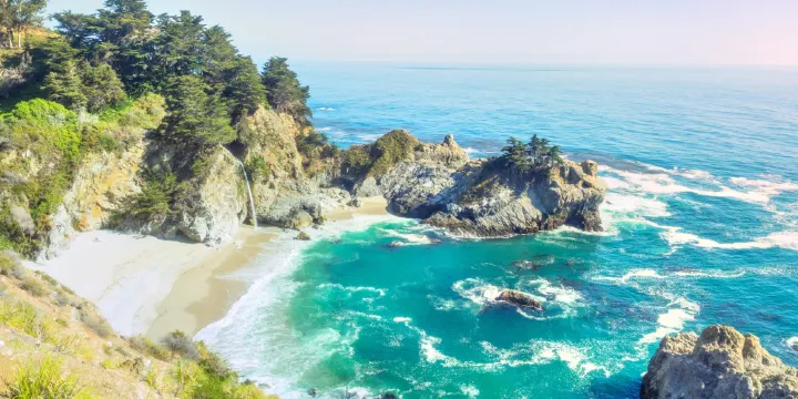 朱莉婭·菲佛·伯恩斯州立公園成立於1962年,是美國加利福尼亞州的一個州立公園。公園內生長著有著2500年樹齡,高達90米的加州紅木。公園內的海灣顏色變化多端,是徒步遊覽的好去處。公園內最出名的要數這裡的麥克威瀑布了,瀑布從80英尺的懸崖直落到太平洋,十分壯麗。瀑布原來屬於私人所有,後來捐獻給了州政府。如今,人們可以通過觀景步道遊覽公園,走到終點處放置有椅子可以供遊客觀賞大海美景。